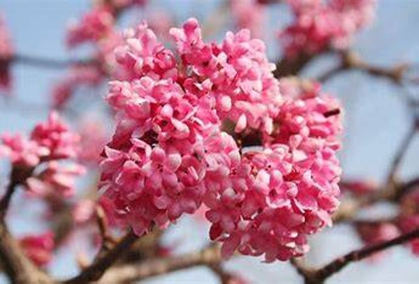 Viburnum bodnantense 'Dawn' of sneeuwbal is een middelgrote bladverliezende heester met een sterk opgaande vorm.