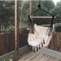 De hangstoel heeft een sterke en duurzame zitting, een lichte structuur en een interessante vorm. Twee inbegrepen in de set Kussens Ze zorgen voor nog meer comfort en kunnen gebruikt worden voor andere tuinmeubelen. De schommel zal goed werken in de woonkamer of kinderkamer, waar hij, vakkundig opgehangen aan het plafond, zeker elk lid van het huishouden en alle gasten zal verrassen. Het creëert de perfecte sfeer voor ontspanning in de tuin of op het terras.